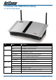 1-4 Overview of the HS960 Wireless Gateway 1-4-1 Top Panel LEDs Indication LED State Description PWR Off The HS960 is not receiving electrical power. Green The HS960 is receiving electrical power. Off The HS960 status is defective. Green The HS960 status is complete. Green (Blinking) During firmware upgrades, this system LED will blink. Off Port has not established a network connection. Green Port has established a valid 10/100Mbps network connection.