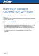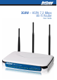 3G9W - HSPA 7.2Mbps Wi-Fi Router USER GUIDE 1.1 • • • • • • • • • • • • • • • • • 1.2 Features This HSPA 7.2Mbps Wi-Fi Router allows you to share your 3G connection with multiple wireless or wired devices Provides you with worldwide coverage through triple-band HSUPA/HSDPA/UMTS (850 / 1900 / 2100 MHz), quad-band EDGE/GSM (850 / 900 / 1800 / 1900 MHz) Embedded multi-mode HSUPA/HSDPA/UMTS/EDGE/GPRS/GSM module Integrated 802.11g/54Mbps AP (backward compatible with 802.