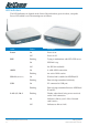 LED Indicators The LED Indicators are located on the front of the unit and are green in colour, except the Power LED which is red. The meanings are as follows: Label Status Indicates Power On Power is on. Off Power is off. Flashing Trying to authenticate with ISP’s PPP server. On PPP link is up. Off No PPP link available. On A valid ADSL connection. Flashing An active WAN session. On Wireless link is enabled on NB5Plus4W. Flashing Data is being transmitted wirelessly.