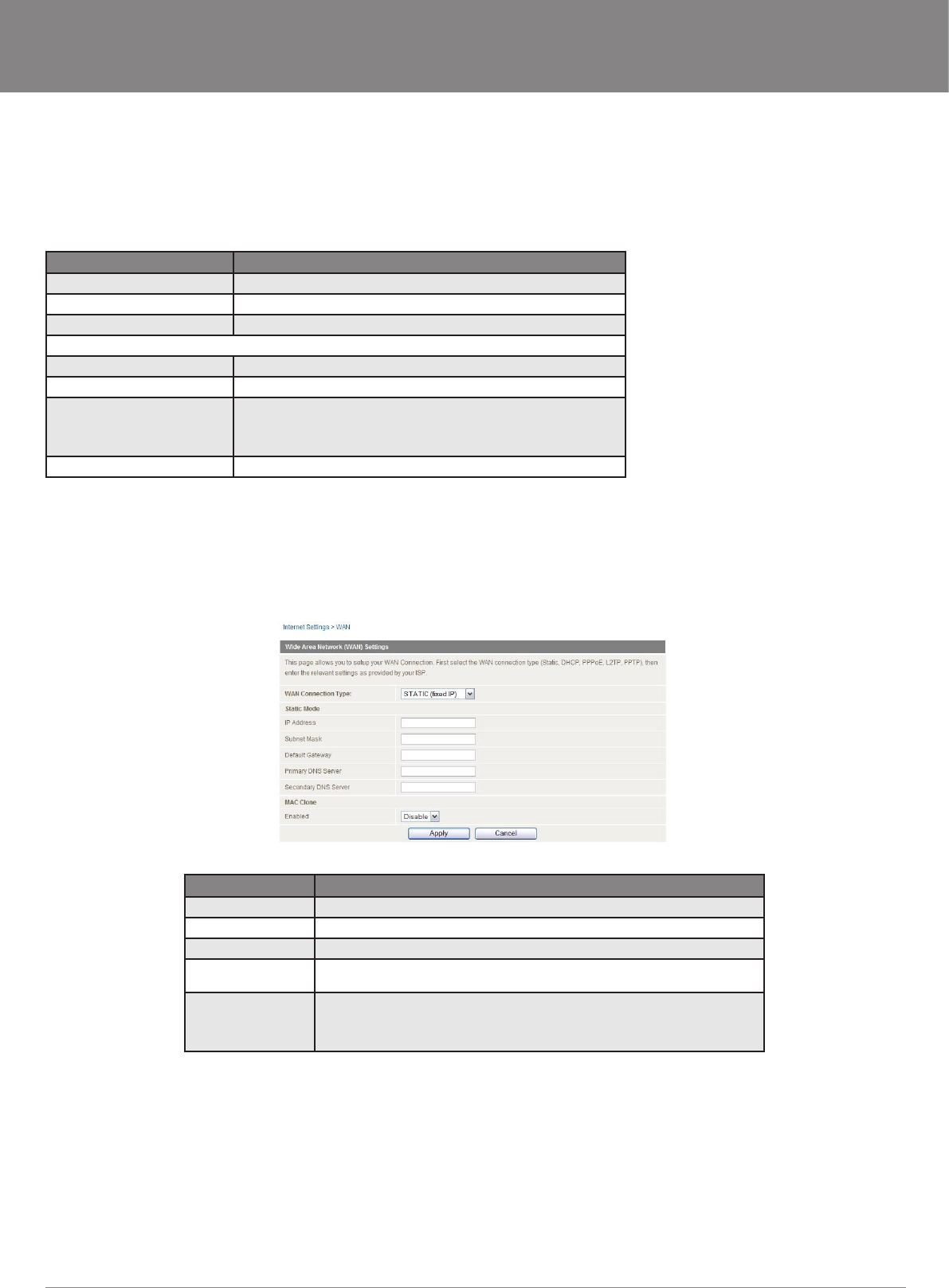 If your WAN connection uses a static IP address, please select Static IP Address and ll in the required information in the elds provided.
