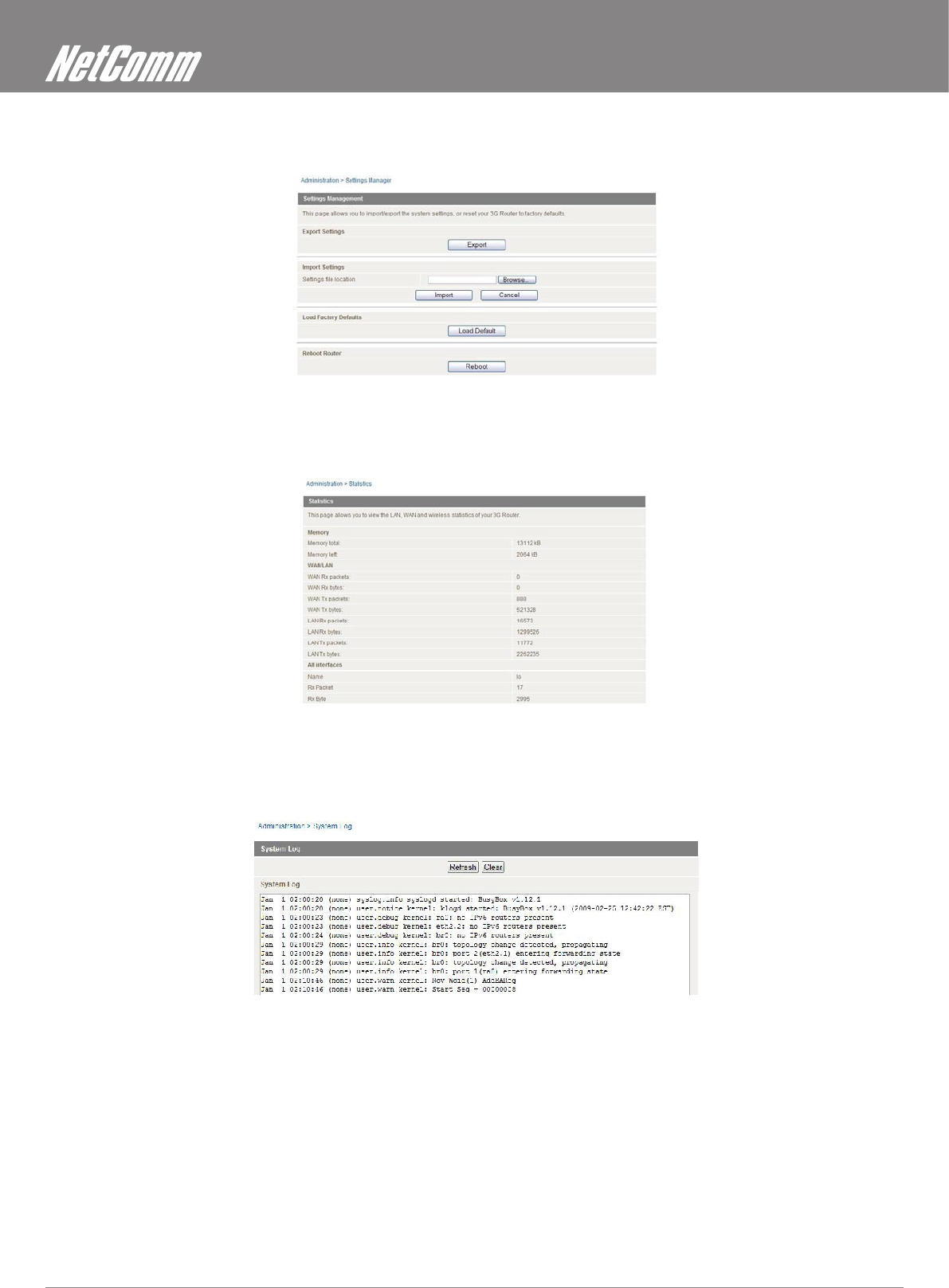 This page allows you to import/export the system settings, reset your 3G Router to factory defaults, or reboot your 3G Router.