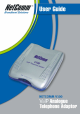 Introduction Thank you for your purchase of NetComm's V100 VoIP ATA (Analogue Telephone Adapter). The V100 ATA is a standards-based communication device that delivers true, next-generation voiceover-IP (VoIP) telephony to residences worldwide. The V100 ATA addresses the needs of smalloffice and home environments and emerging VoIP services by turning your analog phone into an IP device.