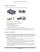 N600 Wireless Dual Band Router WNDR3400v3 Table 1. Front panel LED descriptions (continued) LED Description LAN ports 1–4 • • • • • 5 GHz • Solid blue. The wireless radio is operating. • Blinking blue. Data is being sent or received over the wireless network. • Off. The wireless radio is off. 5 GHz 2.4 GHz 2.4 GHz Solid green. The LAN port has detected a 1,000 Mpbs link with an attached device. Blinking green. Data is being sent at 1,000 Mbps. Solid amber.