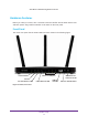 A750 Wireless Dual Band Gigabit Router R6050 • WPS/FastLane button. You can use this button to use WPS or FastLane to add a wireless device or computer to your wireless network. The LED below the WPS/FastLane button blinks green when the router is trying to add the wireless device or computer. The LED stays solid green when wireless security is enabled in the router. Back Panel The back panel has the buttons and connections shown in the following figure.