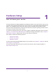 Contents Chapter 1 Hardware Setup Unpack Your Router . . . . . . . . . . . . . . . . . . . . . . . . . . . . . . . . . . . . . . . . . . . . . . . . . . 8 Position Your Router . . . . . . . . . . . . . . . . . . . . . . . . . . . . . . . . . . . . . . . . . . . . . . . . . . 9 Hardware Features . . . . . . . . . . . . . . . . . . . . . . . . . . . . . . . . . . . . . . . . . . . . . . . . . . 10 Front Panel . . . . . . . . . . . . . . . . . . . . . . . . . . . . . . . . . . . . . . . . . . . . . . . . . .