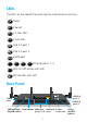LEDs The LEDs on the top of the router light to indicate router activity: Power Internet 2.4 GHz WiFi 5 GHz WiFi USB 3.0 port 1 USB 3.0 port 2 eSATA port Ethernet ports 1–4 WiFi On/Off button with LED WPS button with LED Rear Panel USB 3.0 port 1 eSATA port USB 3.
