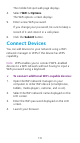 ¾¾ To connect with devices using WPS: 1. Press the Power or Navigation button to awaken the LCD screen. 2. Press the Navigation button until WPS setup screen displays. 3. To activate WPS, press the Power button. 4. Within two minutes, press the WPS button on the device that you want to connect to your WiFi network. The mobile hotspot and the wireless device automatically communicate and establish a connection.
