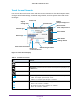 Telstra Wi-Fi 4GX Advanced III Touch Screen Elements You can use the touch screen icons and other screen elements to view the hotspot’s status, configure Wi-Fi band settings, view data usage details, and view system alerts and carrier messages. Signal strengh icon Traffic icon Network name Battery and percentage icon Wi-Fi network name and password Network type Home button Data usage Back button Settings button Wi-Fi status and button SMS messages button Number of connected devices Figure 2.