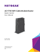 AC1750 WiFi Cable Modem Router Support Thank you for purchasing this NETGEAR product. You can visit www.netgear.com/support to register your product, get help, access the latest downloads and user manuals, and join our community. We recommend that you use only official NETGEAR support resources. Conformity For the current EU Declaration of Conformity, visit http://kb.netgear.com/app/answers/detail/a_id/11621. Compliance For regulatory compliance information, visit http://www.netgear.com/about/regulatory.