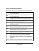 ADSL2+ Modem Wireless Router DG834G Reference Manual Table 4-1. Modem Router Status Fields (continued) Field Wireless Port These are set in the Wireless Settings page; see “Viewing or Changing Wireless Settings” in Chapter 2. Description Name (SSID) The service set ID, also known as the wireless network name. Region The country where the unit is set up for use. Channel The current channel, which determines the operating frequency. Wireless AP Indicates if the access point feature is disabled or not.