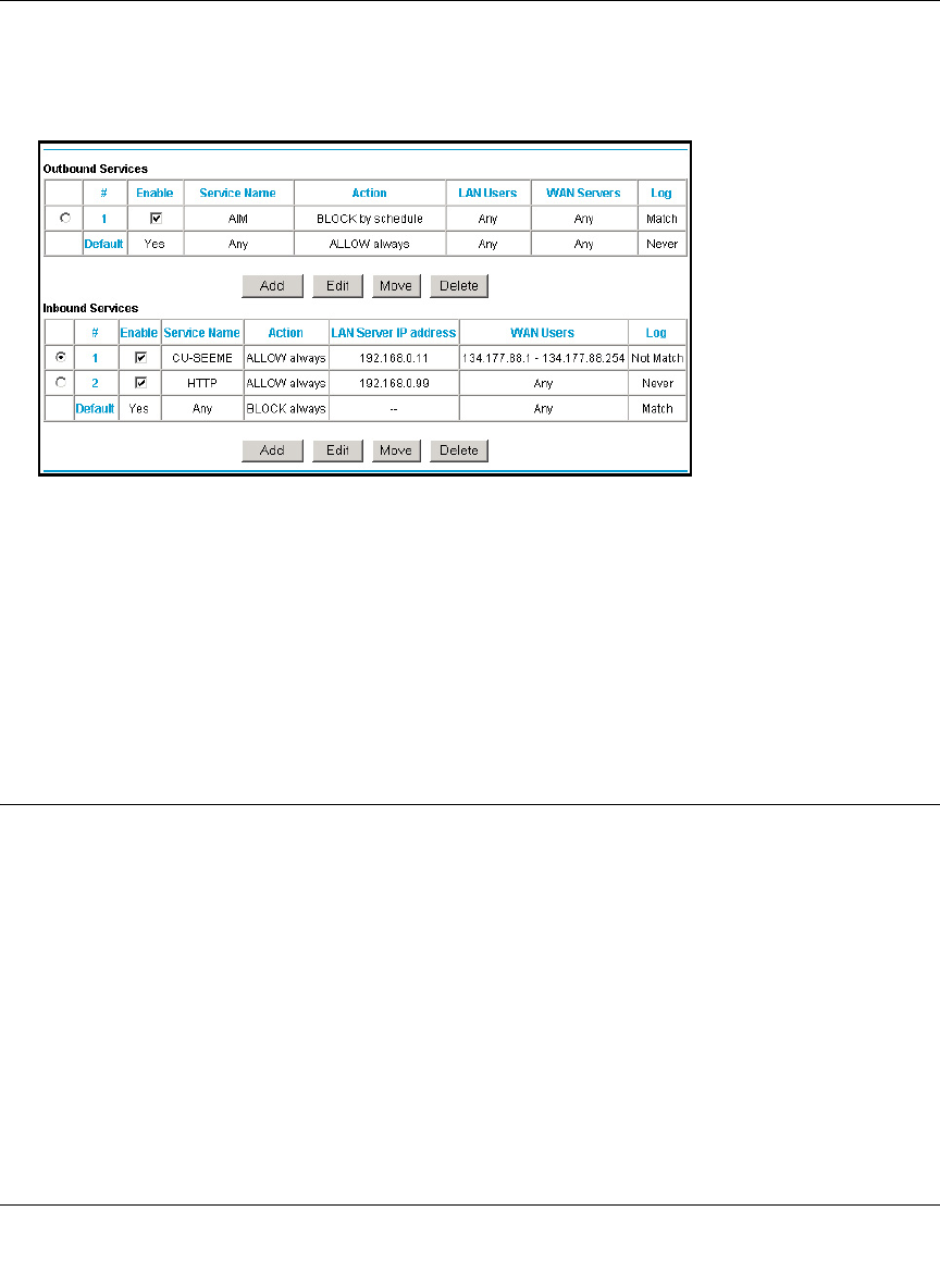determining the disposition of a packet. The Move button allows you to relocate a defined rule to a