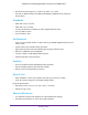 N600 Wireless Dual Band Gigabit ADSL2+ Modem Router DGND3700v2 Table 14. DGND3700v2 Router specifications (continued) Feature Description Electromagnetic emissions FCC Part 15 Class B VCCI Class B EN 55 022 (CISPR 22), Class B C-Tick N10947 LAN 10BASE-T or 100BASE-Tx, RJ-45 WAN 10BASE-T or 100BASE-Tx, RJ-45 Wireless Maximum wireless signal rate complies with the IEEE 802.11 standard. See the footnote for the previous table. Radio data rates Auto Rate Sensing Data encoding standards IEEE 802.