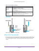 AC750 Dual Band WiFi Range Extender Table 1. Front panel LEDs (continued) LED Description Power LED • • • • WPS/Mode LED • • • Solid amber. The extender is booting. Solid green. The extender is powered on. Blinking green. The extender is switching between extender mode and access point mode. Off. The extender is powered off. Solid green. The extender is in extender mode. Blinking green. A WPS connection is being established or the extender is switching between extender mode and access point mode.
