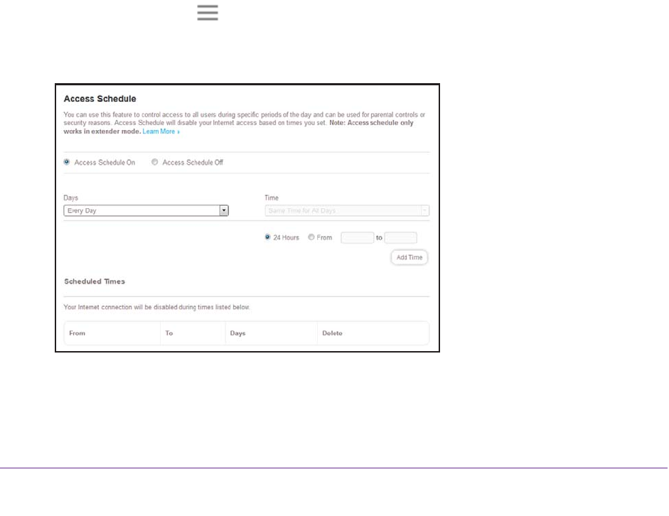 access schedule that prevents Internet access through the extender network based on the