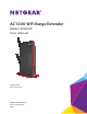 AC1200 WiFi Range Extender Technical and Environmental Specifications The following table shows the technical and environmental specifications. Table 5. Technical specifications Technical Specifications Network protocol and standards compatibility Data and routing protocols: TCP/IP, DHCP server and client, DNS relay, NAT (many-to-one), VPN pass-through (IPSec, PPTP) Power adapter • • North America (input): 120V, 60 Hz All regions (output): 12 VDC @ 2.