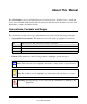About This Manual The NETGEAR® ProSafeTM GS108T Hardware Installation Guide describes how to install and power on the GS108T Smart Switch. The information in this manual is intended for readers with intermediate computer and Internet skills. Conventions, Formats and Scope The conventions, formats, and scope of this manual are described in the following paragraphs: • • Typographical Conventions.