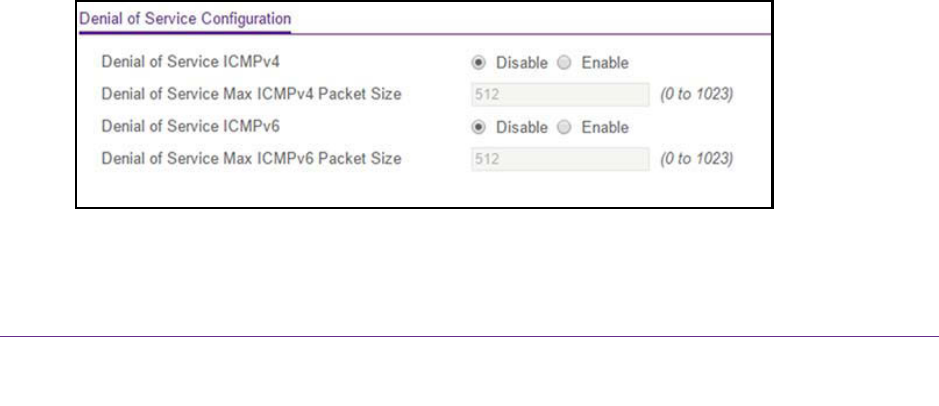 You can select which types of DoS attacks the switch monitors and blocks.