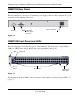 The following figure shows the front panel of the GSM7224. The front panel contains LEDs, a