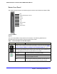 Mobile Broadband 11n Wireless Router MBR1000 User Manual Table 1. Front Panel Button and LED Descriptions Button/LED Internet Port Wi-Fi LAN Ports WAN Port 2G/3G Signal Quality Activity Description Solid green There is an Internet session. Solid red No Internet connection. Blinking green Data is being transmitted over the Internet connection. Blinking green and red Traffic meter limit has been reached. Off No Internet connection detected or device in bridge mode.