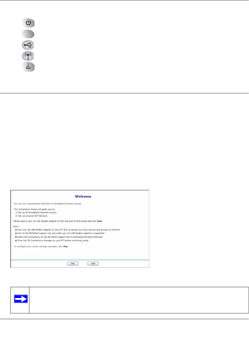 3. Verify that the following LEDs on the front of the router light up: