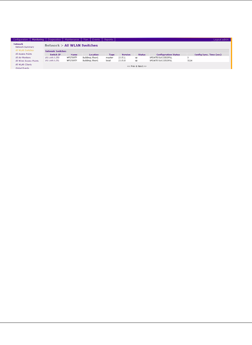 WLAN Switches page on the master (see Figure 10-2). It takes about 4–5 minutes for the
