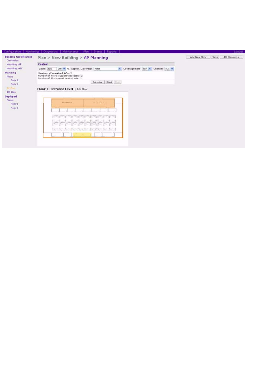The AP Planning page (Figure 4-15) uses the information entered in the modeling pages to locate