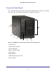 ReadyNAS Desktop Storage Systems Front and Side Panels This section describes the front and side panels of ReadyNAS Ultra 6, Ultra 6 Plus, Pro 6, Pro Pioneer, and Pro (Business Edition) units. Your unit’s color might vary from the color shown in this manual. 7 1 2 6 3 4 5 Figure 7. ReadyNAS Ultra 6, Ultra 6 Plus, Pro 6, Pro Pioneer, and Pro (Business Edition) front and side panels 1. Exhaust vent 2. Power button and LED 3. USB and backup status LED 4. Backup button 5. USB 2.0 port 6.