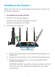 Installieren des Routers Stellen Sie sicher, dass Ihr Internetdienst eingerichtet ist, bevor Sie den Router installieren. ¾¾ So installieren Sie den Router: 1. Entfernen der Antennenkappen. Entfernen Sie die Antennenkappen von den Antennensteckplätzen am Router. 2. Anbringen der Antennen. Antennensteckplätze a. Richten Sie die Antennen an den Antennensteckplätzen am Router aus. b. Bringen Sie die Antennen an den Antennensteckplätzen an. c.