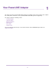 PowerLINE 2000 Add an Adapter to an Existing PowerLINE Network You can add additional adapters to an existing PowerLINE network. To add an adapter to a PowerLINE network: 1. Plug the adapter into a wall outlet where you want to add Internet access. 2. (Optional) Use the Ethernet cable that came with your adapter to connect the adapter to an Ethernet port on a computer, game console, Blu-ray player, or other peripheral device.
