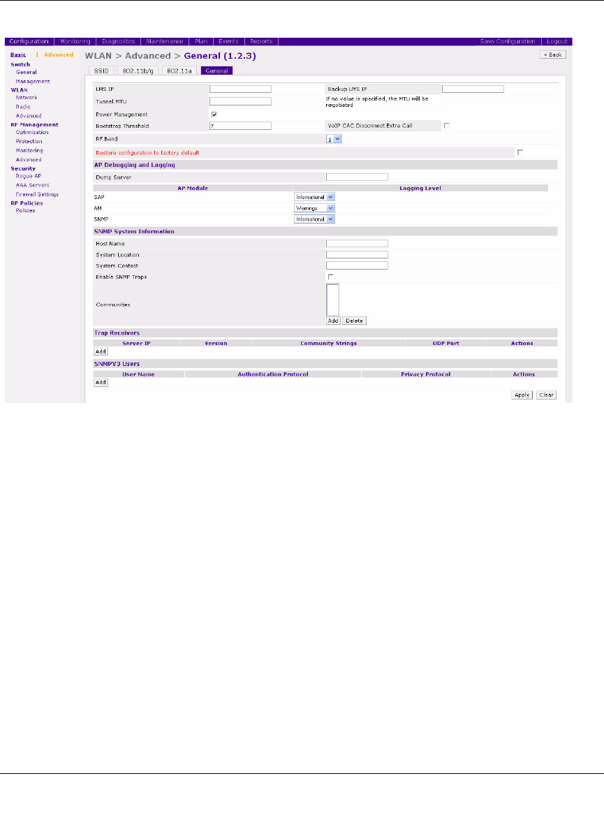 The General configuration in the Advanced WLAN pages allows you to configure the following