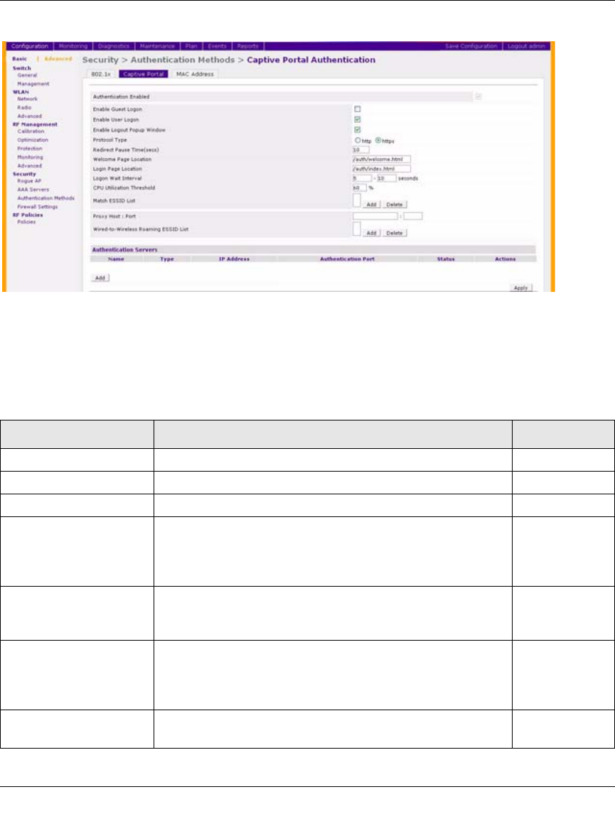 Authentication Enabled Enables Captive Portal authentication.