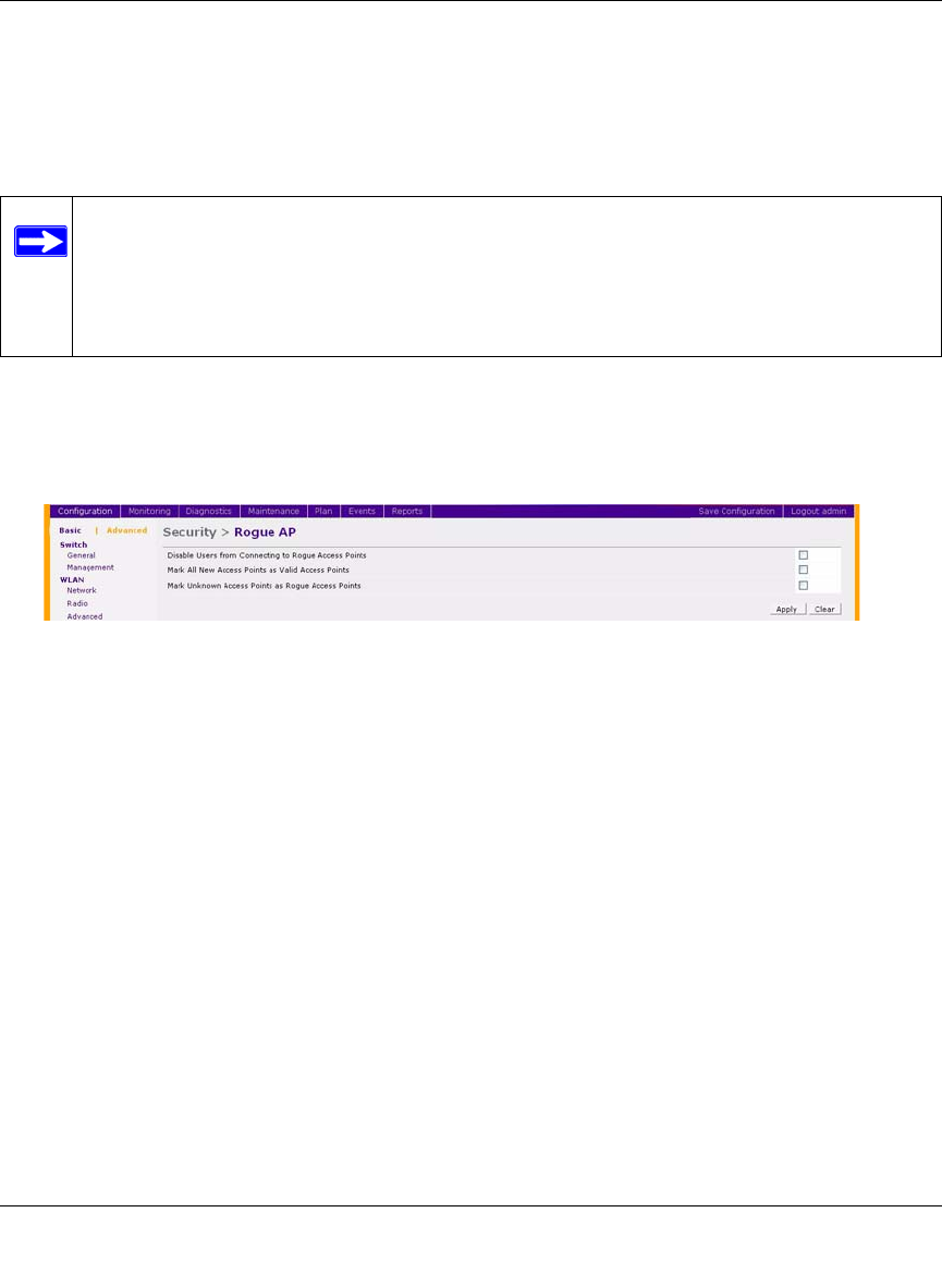 1. Navigate to the Configuration > Advanced > Security > Rogue AP page on the master