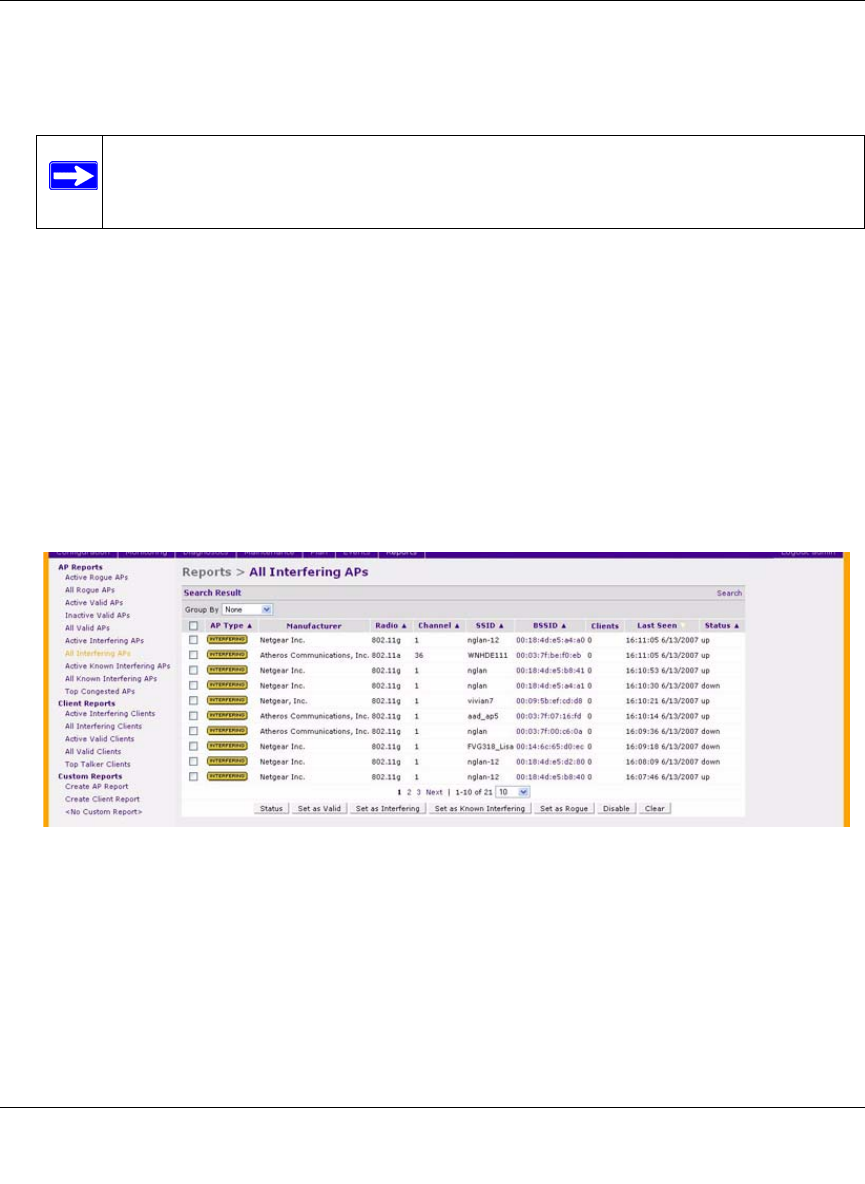 Navigate to the Reports > AP Reports> All Interfering APs page on the master WFS709TP