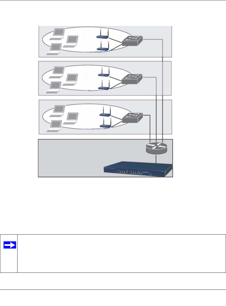 In this deployment scenario (Figure 2-3), the APs and the WFS709TP are on different