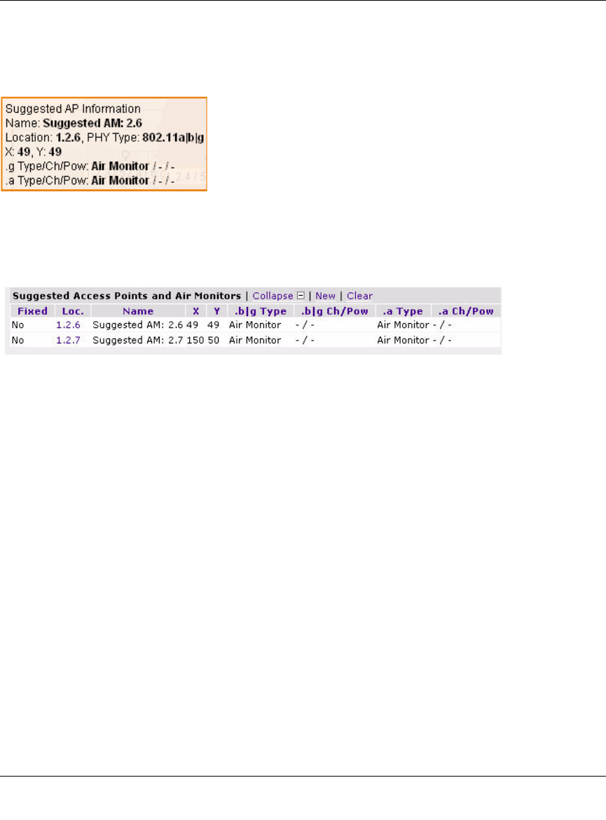 The Suggested Access Points and Air Monitors table (Figure 4-20) lists the coordinates, power,