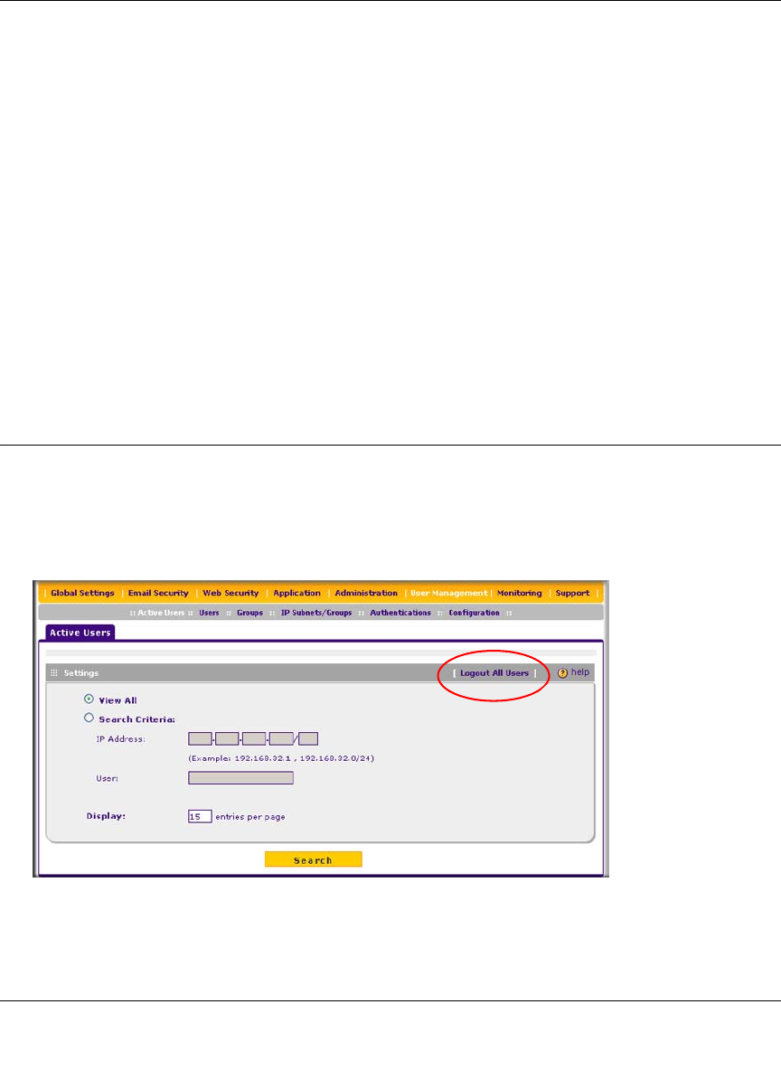 1. Select User Management > Active Users from the menu. The Active Users screen displays.