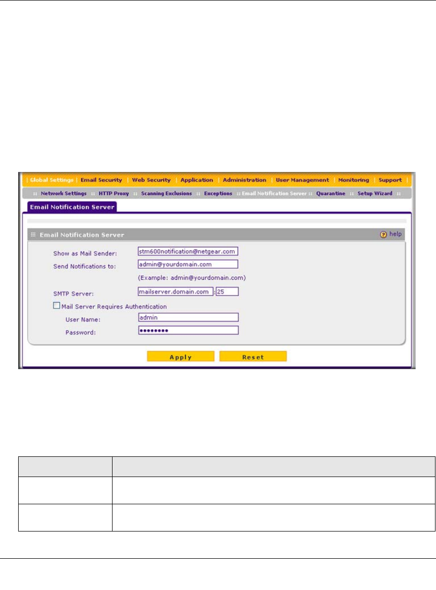 1. Select Global Settings > Email Notification Server from the menu. The Email Notification