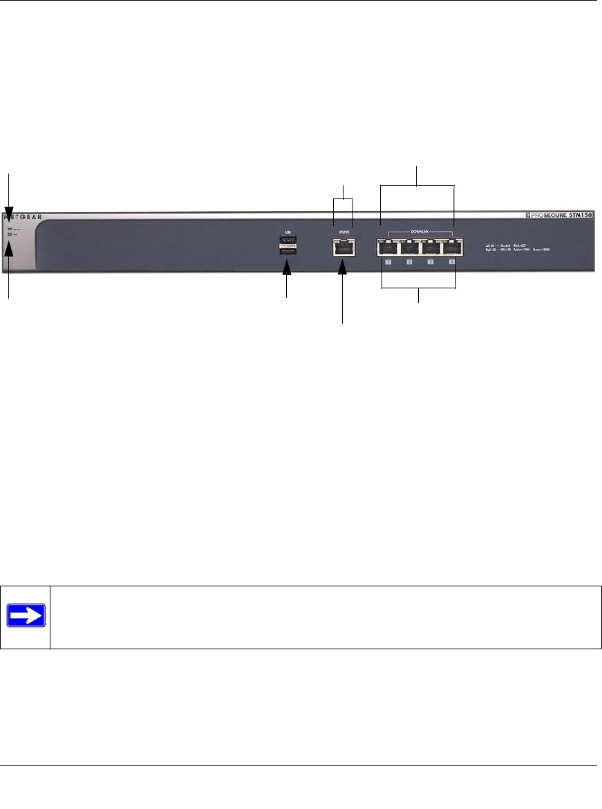 From left to right, the STM150âs front panel shows the following ports and LEDs: