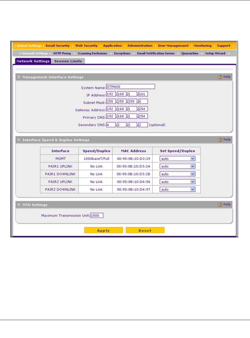 tabs appear with the Network Settings screen in view (Figure 3-1 shows the STM600).