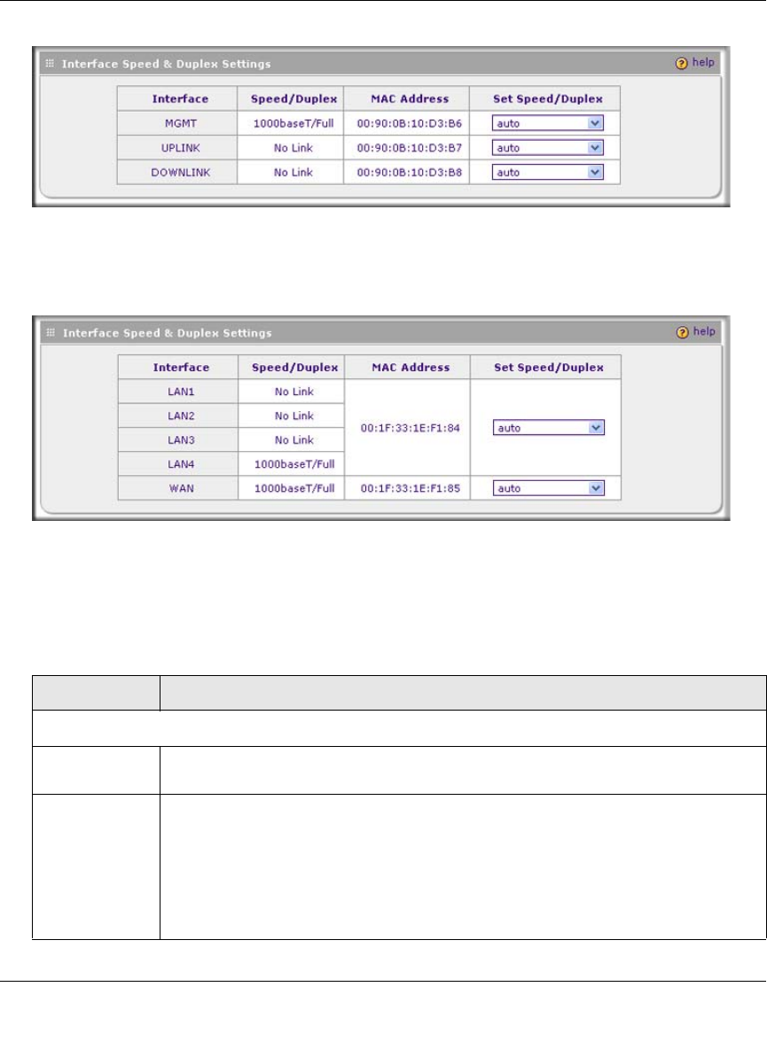 Figure 3-3 shows the Interface Speed & Duplex Settings section of the Network Settings