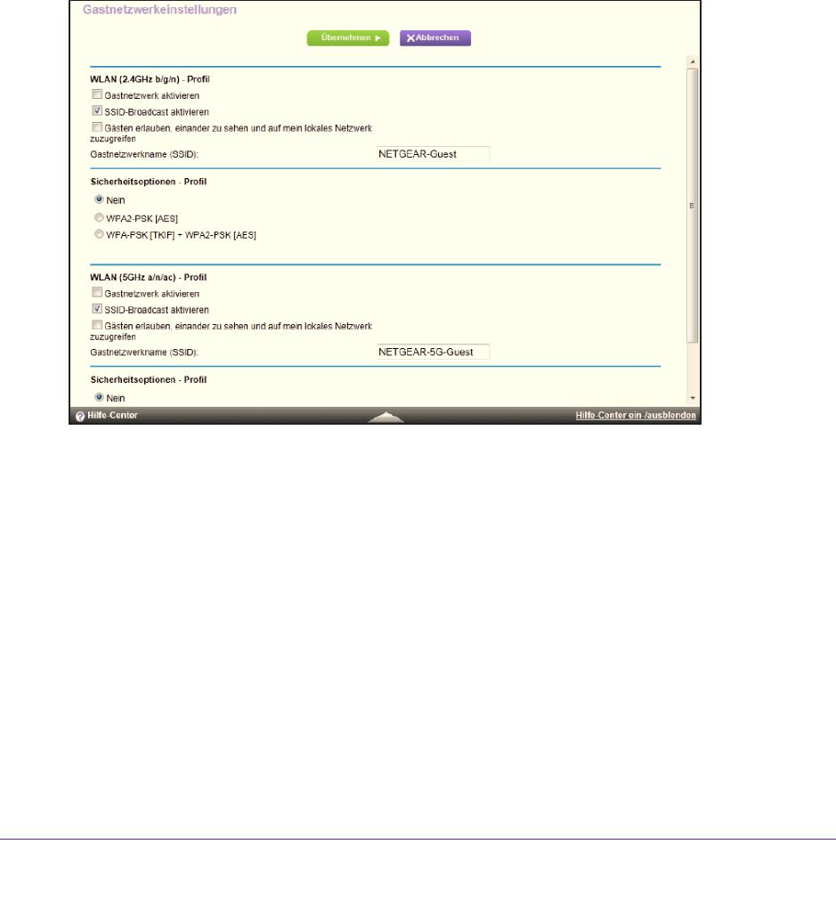 Kontrollkästchens wird das Gastnetzwerk aktiviert. Gäste können mit der SSID dieses