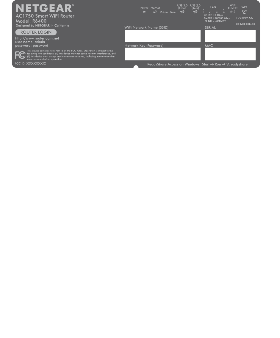 Das Etikett am Router zeigt die Anmeldeinformationen, die MAC-Adresse und die