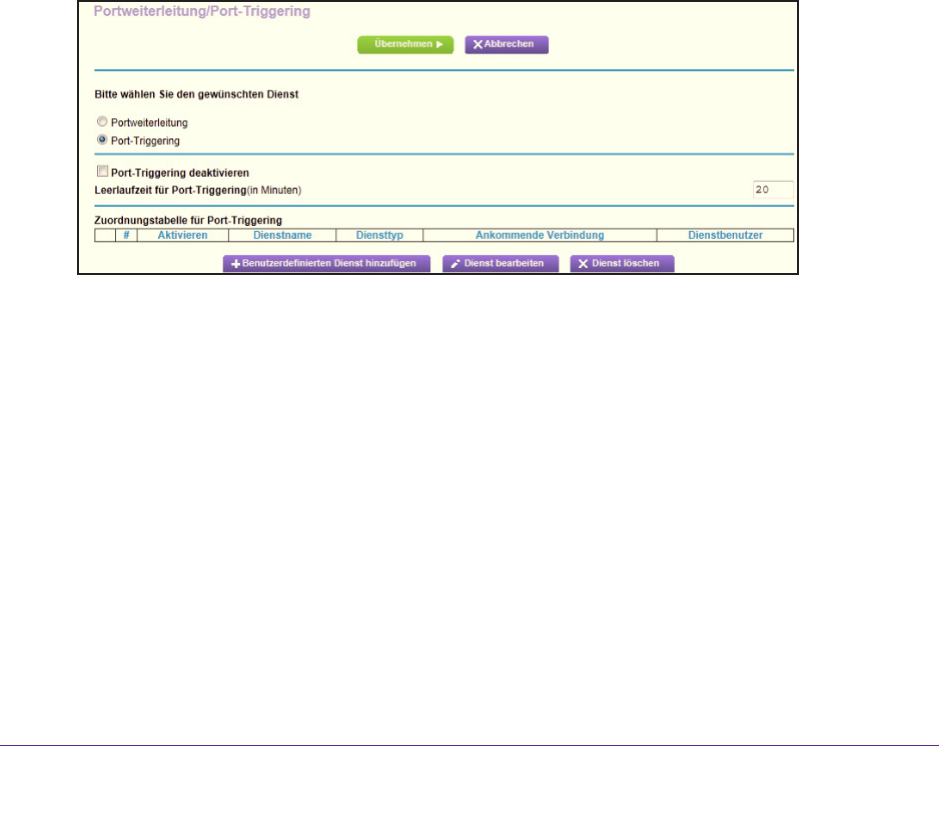Wenn dieses Kontrollkästchen aktiviert ist, verwendet der Router kein Port-Triggering,