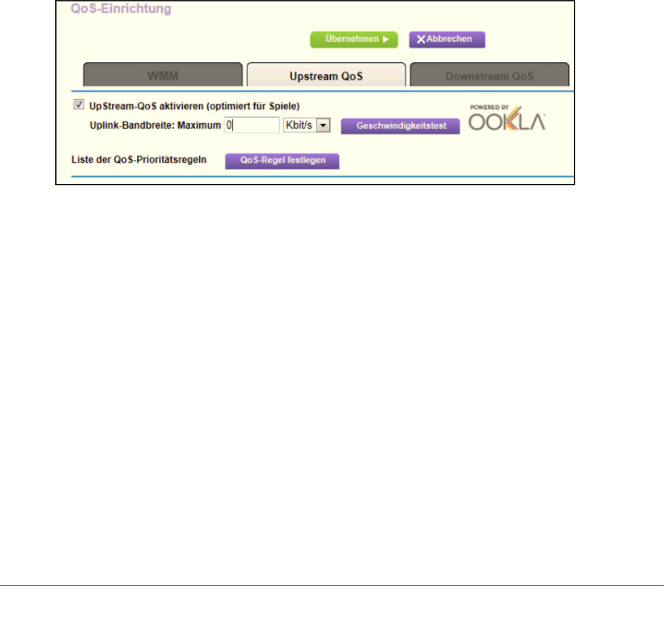 NETGEAR empfiehlt, dass nur Spieler die Upstream QoS-Funktion aktivieren. Wenn Sie
