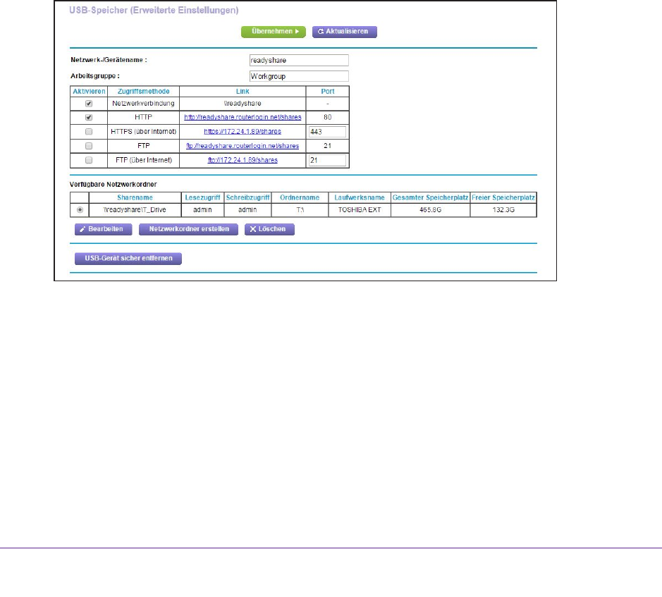 Gemeinsame Nutzung von an den Router angeschlossenen USB-Speichergeräten
