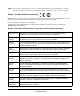 RangeMax Dual Band Wireless-N Modem Router DGND3300 User Manual Table A-1. Specifications (continued) Environmental Operating temperature 0° to 40° C (32º to 104º F) Operating humidity 10% to 90% relative humidity, noncondensing Storage temperature -20° to 70° C (-4º to 158º F) Regulatory Compliance Meets requirements of FCC Part 15 Class B; VCCI Class B; EN 55 022 (CISPR 22), Class B Interface Specifications A-4 LAN 10BASE-T or 100BASE-Tx, RJ-45 WAN (ADSL) ITU 992.1 (G.dmt) Annex A, ITU 992.