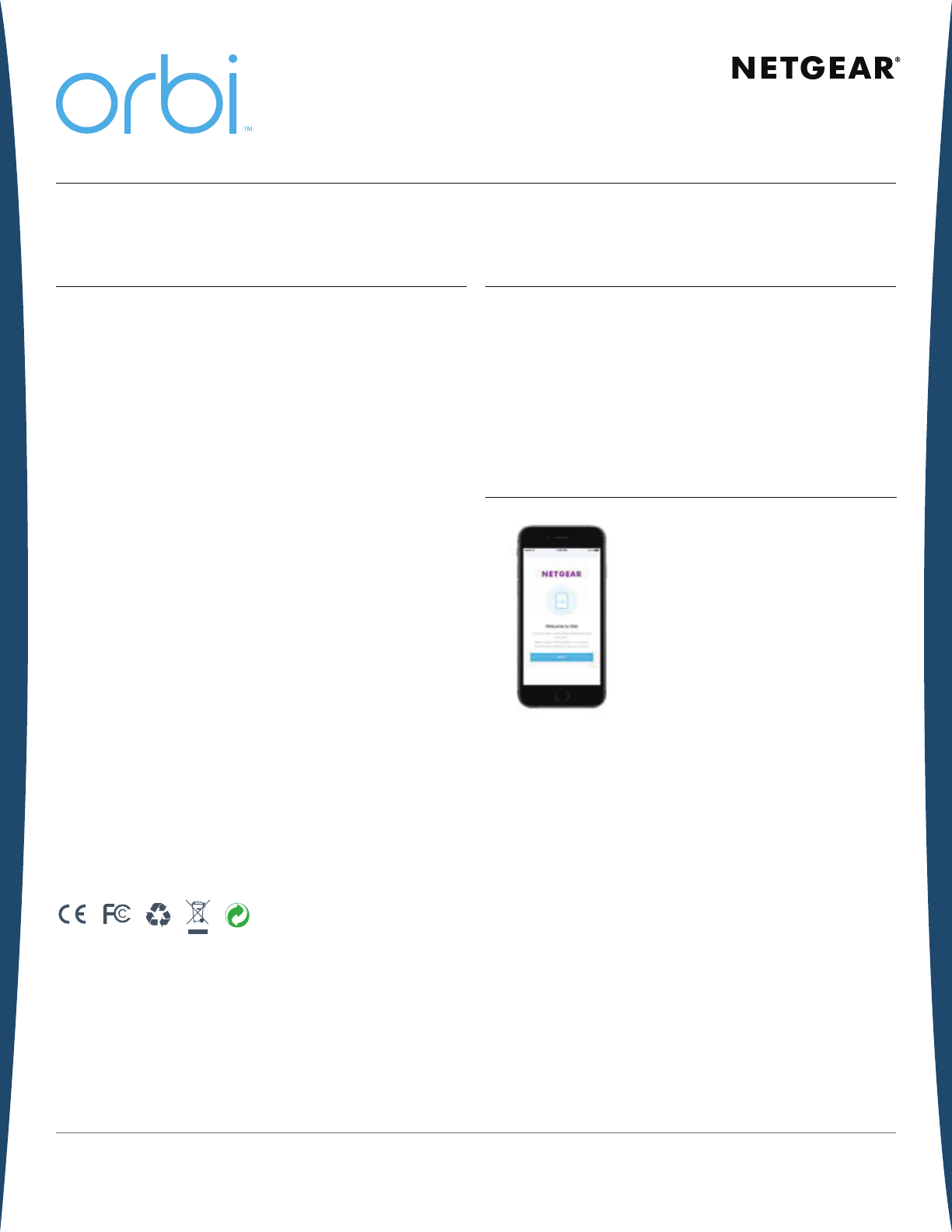 © 2017 NETGEAR, Inc. NETGEAR, the NETGEAR Logo, and Orbi are trademarks and/or registered trademarks of NETGEAR, Inc. Any other trademarks on this package