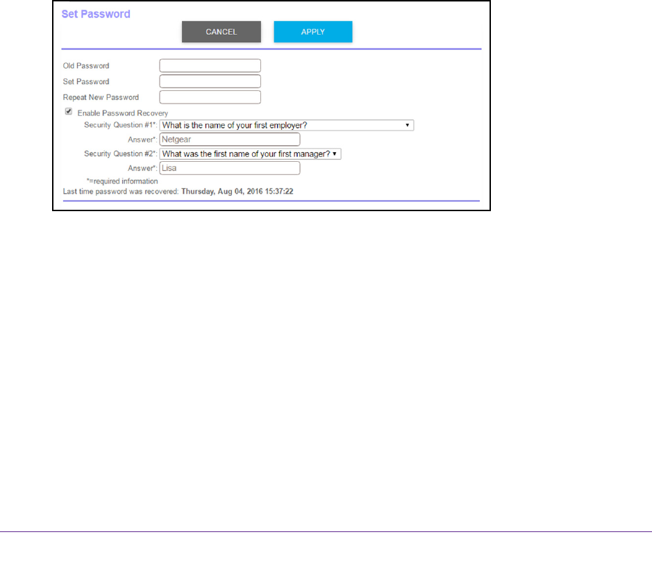 user name admin. Then you can recover the password if it is forgotten. This recovery process