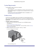 ReadyNAS Desktop Storage Systems WARNING! Use the skip volume check boot mode only when instructed to do so by a NETGEAR Technical Support representative, otherwise data loss might occur. • Memory test. Performs a memory test. The pass or fail result is reported on the status display screen. • Disk test. Performs an offline full disk test. This can take 4 hours or more depending on the size of your disks. Any problems are reported on the status display screen or in the RAIDar discovery tool.