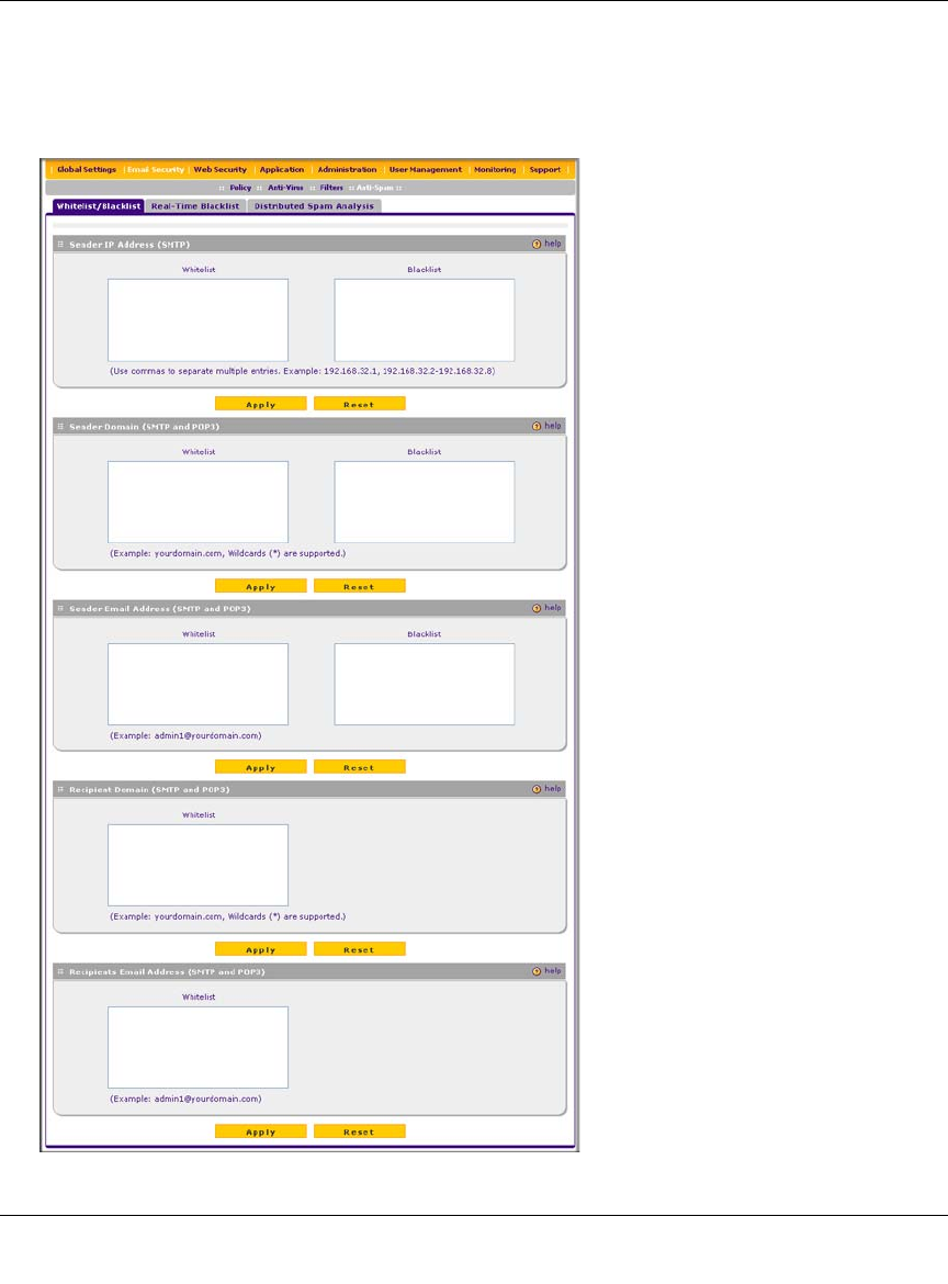 1. Select Email Security > Anti-Spam from the menu. The Anti-Spam submenu tabs appear,